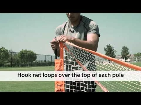 - Goal quickly sets up in 45 seconds without the use of tools, guide wires, or heavy steel crossbars giving you a quick set up, take down time, and reducing risk of injury during game and practice