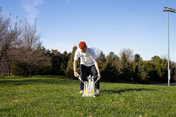 - Telescoping ground pipes allow for a folded size of 17” x 10” x 46”.